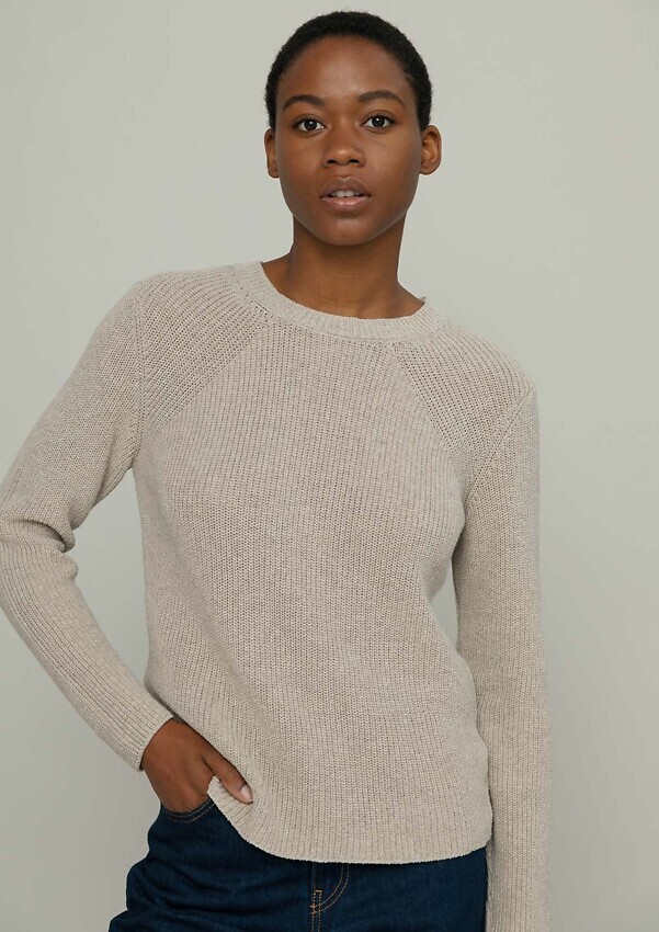 Strickpullover aus recycelter Baumwolle und Bio-Baumwolle.