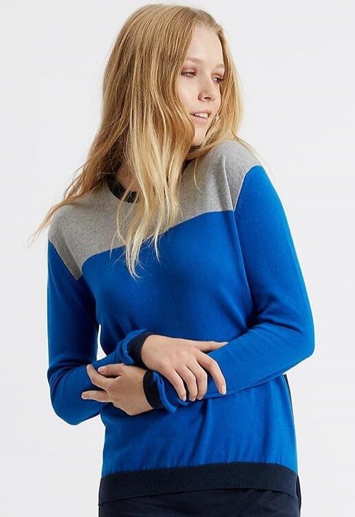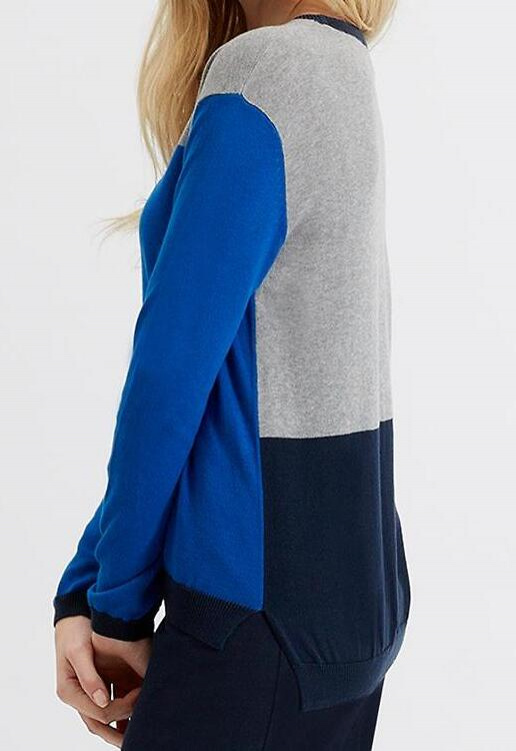 - blockfarbig, vorne grau und blau, hinten navy und grau