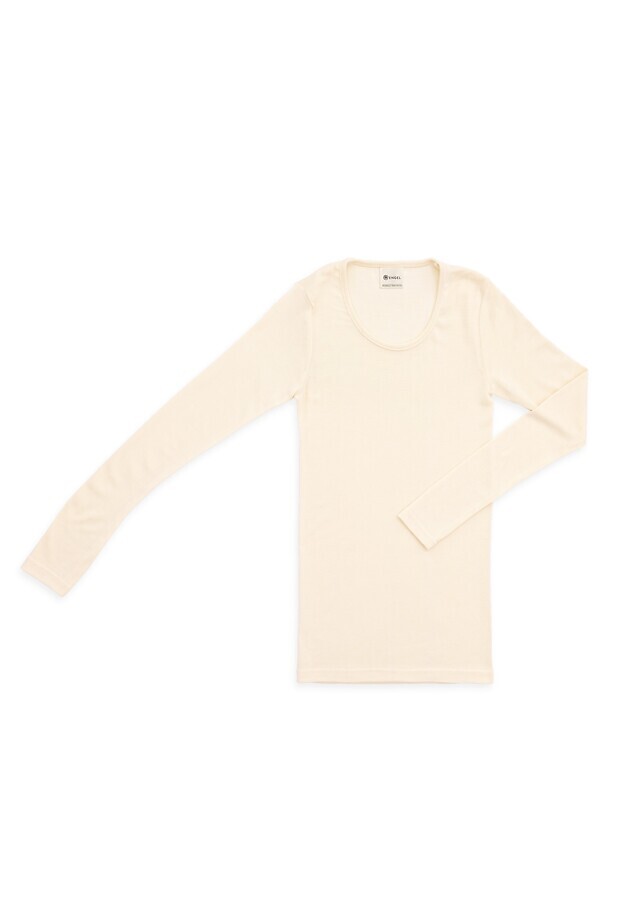 Damen-Unterhemd, lange Arme, aus Wolle/Seide - natur