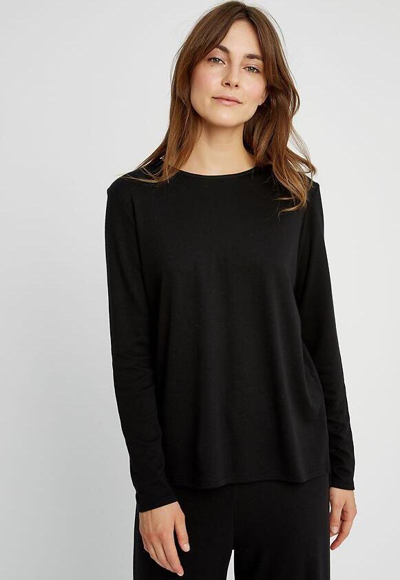 Long sleeved top with rounded neckline and subtle draping for a flattering and comfortable fit. Made from super soft and silky Tencel™ viscose and organic cotton mix.