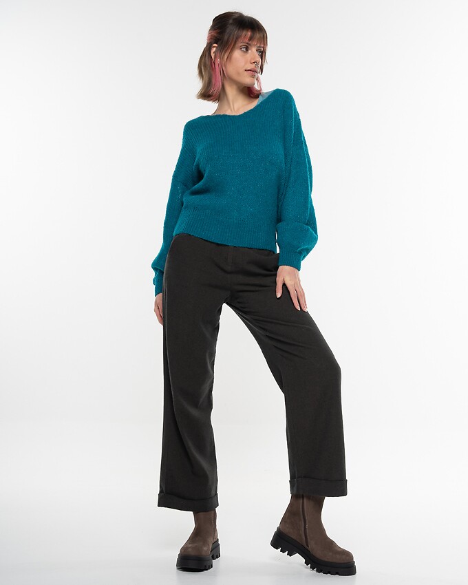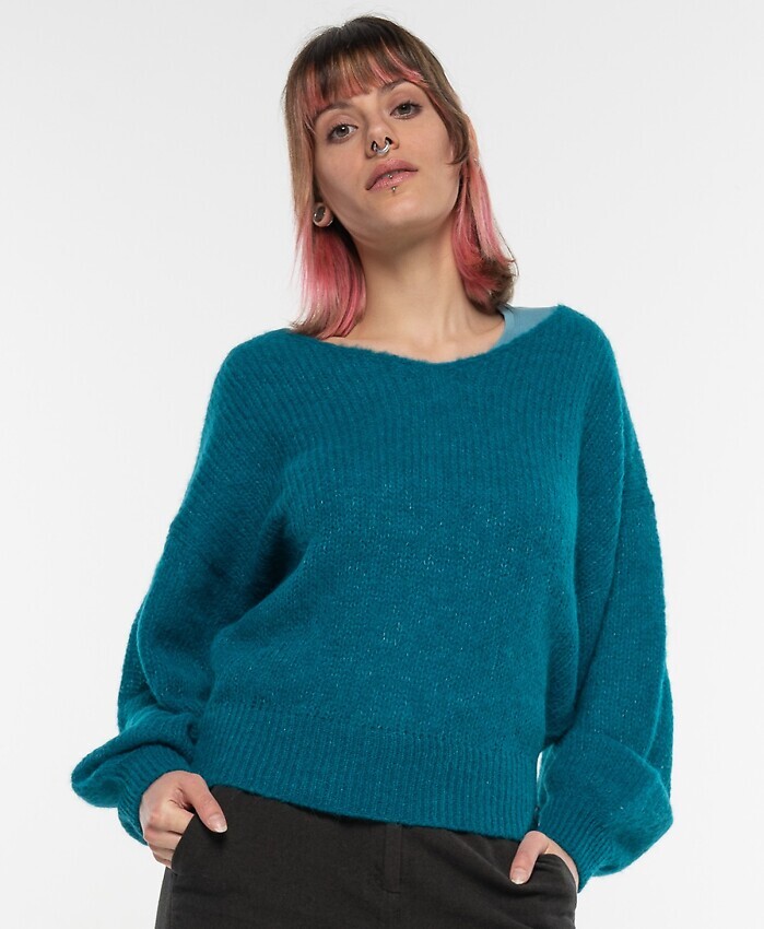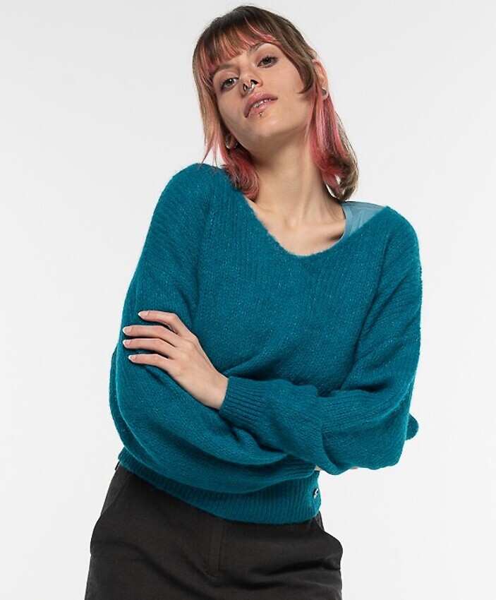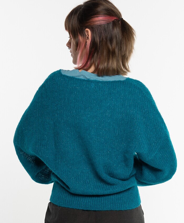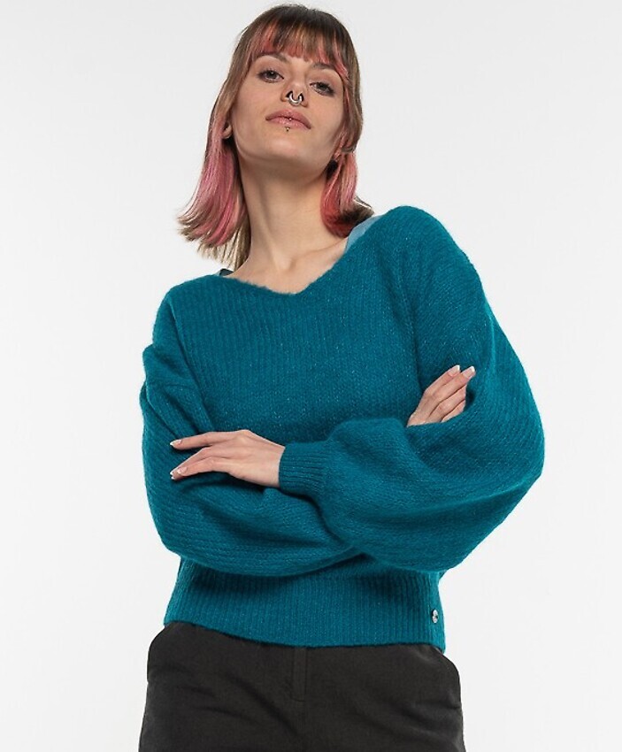 V-Neck Alpakapullover - petrol