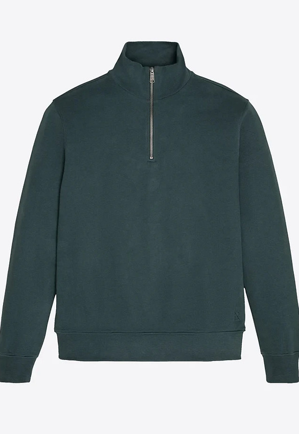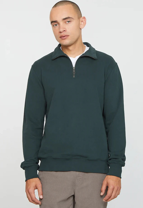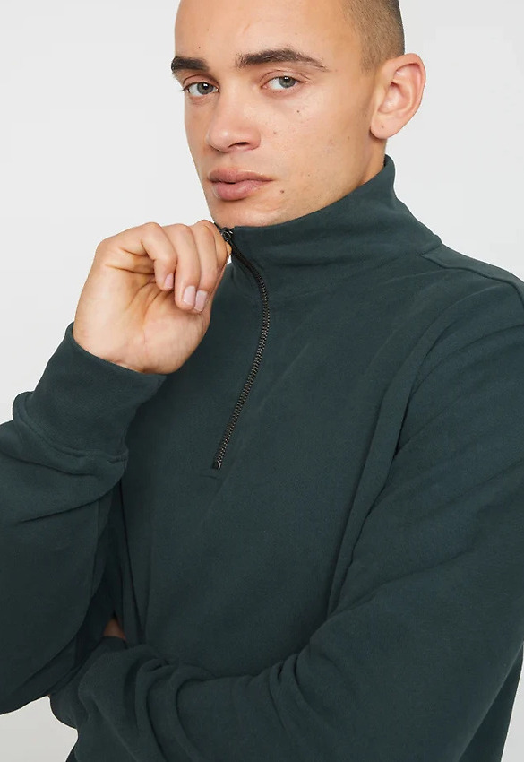 Sweatshirt mit hohem Kragen und Reißverschluss aus Bio-Baumwolle und recycelter Baumwolle.