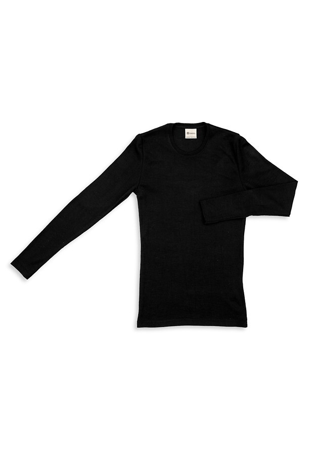 Herren-Unterhemd, lange Arme, (Wolle/Seide) - schwarz