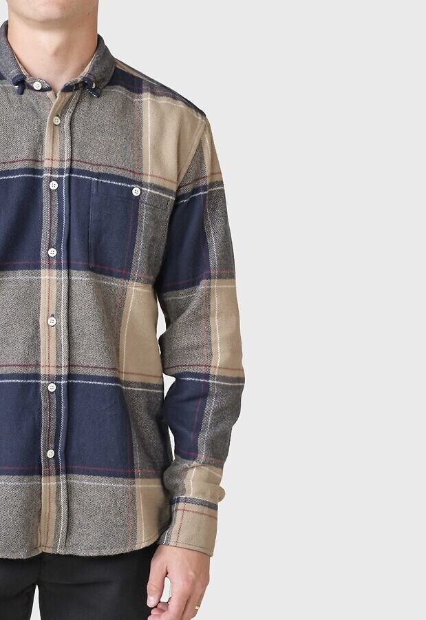 Etwas dickeres, kariertes Flanell-Hemd mit klassischem Kragen und Brusttasche.