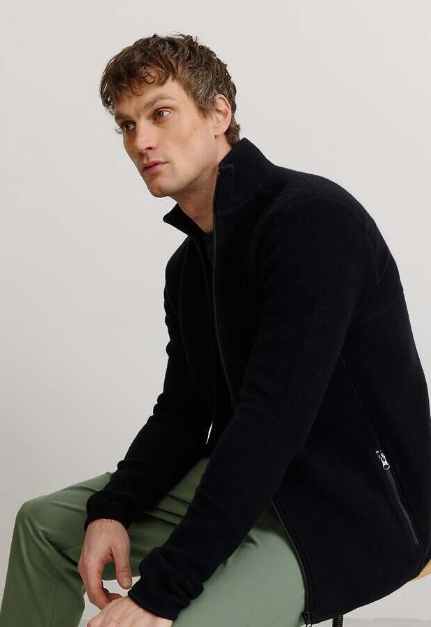Fleece-Jacke mit hohem Kragen und Reißverschluss aus 100% weicher Biobaumwolle.