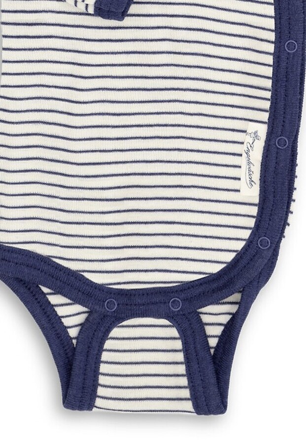 Wickelbody mit Druckknöpfen und langen Armen aus Wolle/Seide-Mischung.
