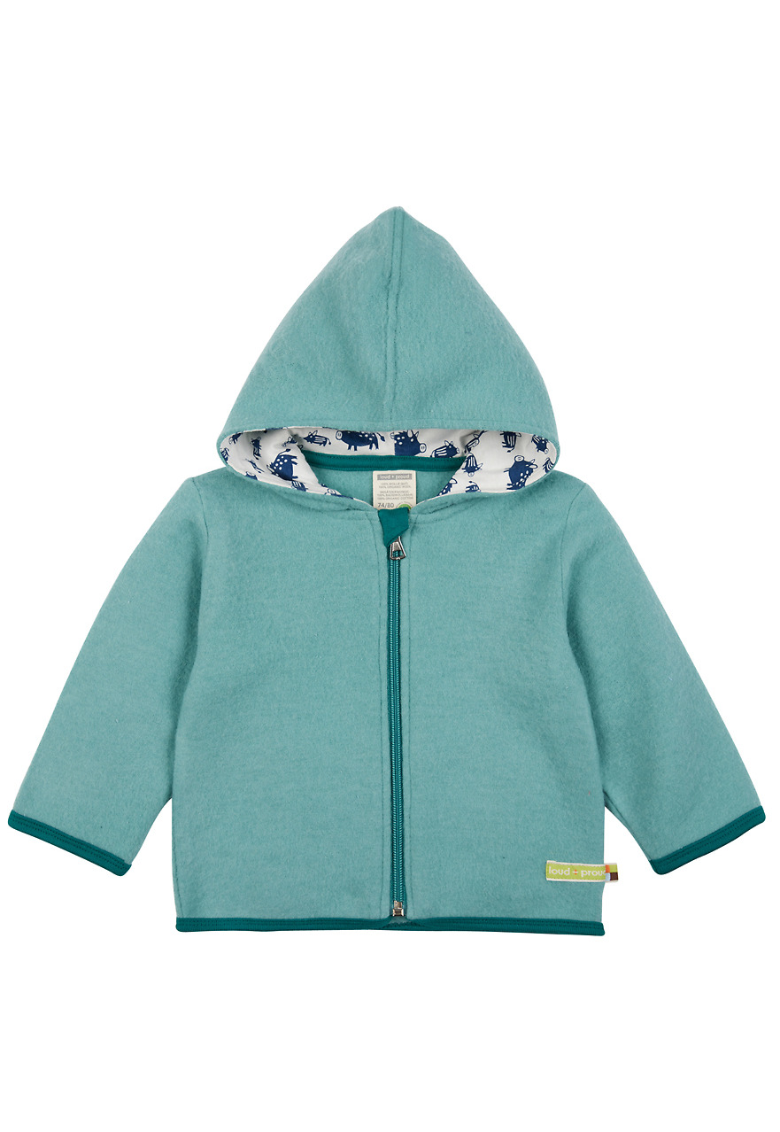 Jacke aus dickem, warmen Woll-Fleece. Saum mit kontrastfarbigem Bündchen. Weicher und elastischer Umschlagbund aus Baumwoll-Feinripp. Logo-Etikett mit Fähnchen der Seite.
