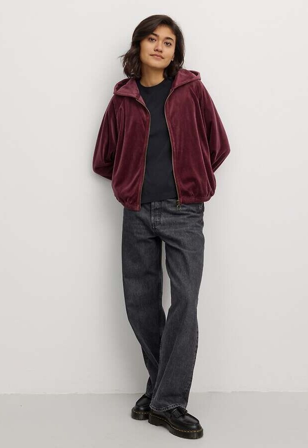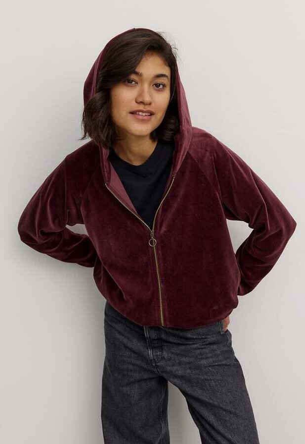 Zip-Hoodie aus weichem Nicki-Velours-Stoff aus Biobaumwolle.
