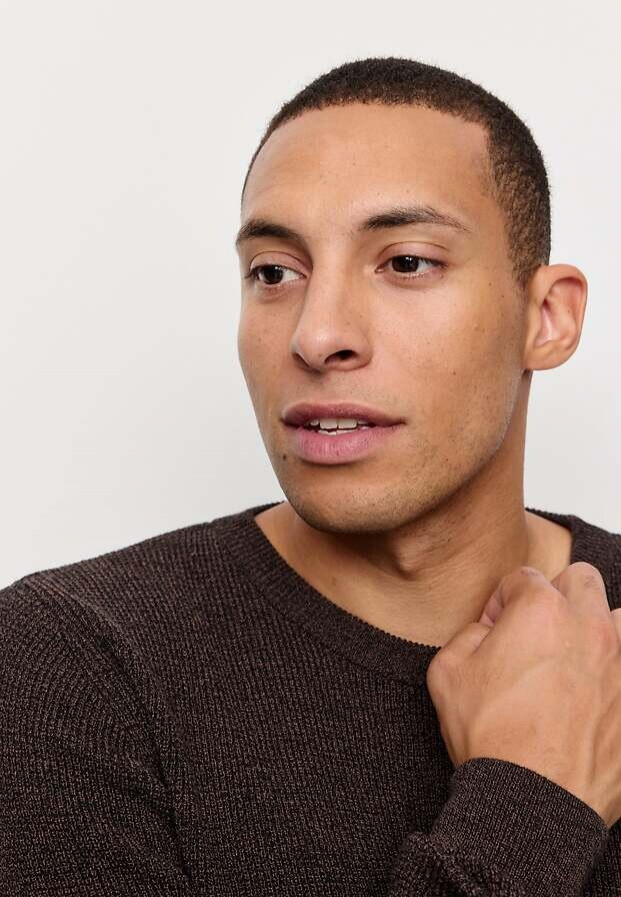 Melierter Rundhalspullover mit zweifarbigem Garn aus weicher Bio-Baumwolle.