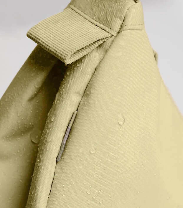 Wasserabweisend durch eine innovative und umweltfreundliche organische Polyurethan-Beschichtung, die den Inhalt der Tasche vor Nässe schützt.