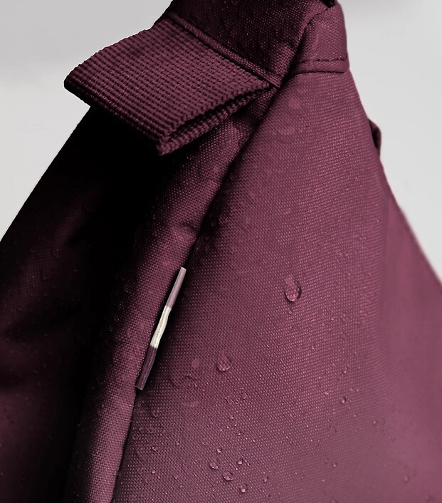 Wasserabweisend durch eine innovative und umweltfreundliche organische Polyurethan-Beschichtung, die den Inhalt der Tasche vor Nässe schützt.