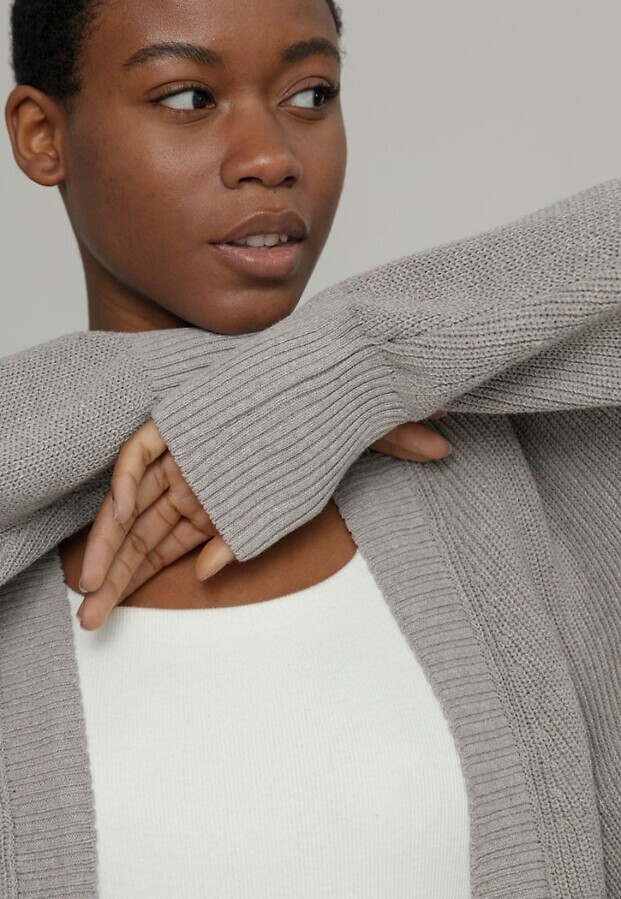 Lässiger Baumwoll-Strickcardigan aus 50% Biobaumwolle und 50% recycelter Baumwolle aus Industrieabfällen.
