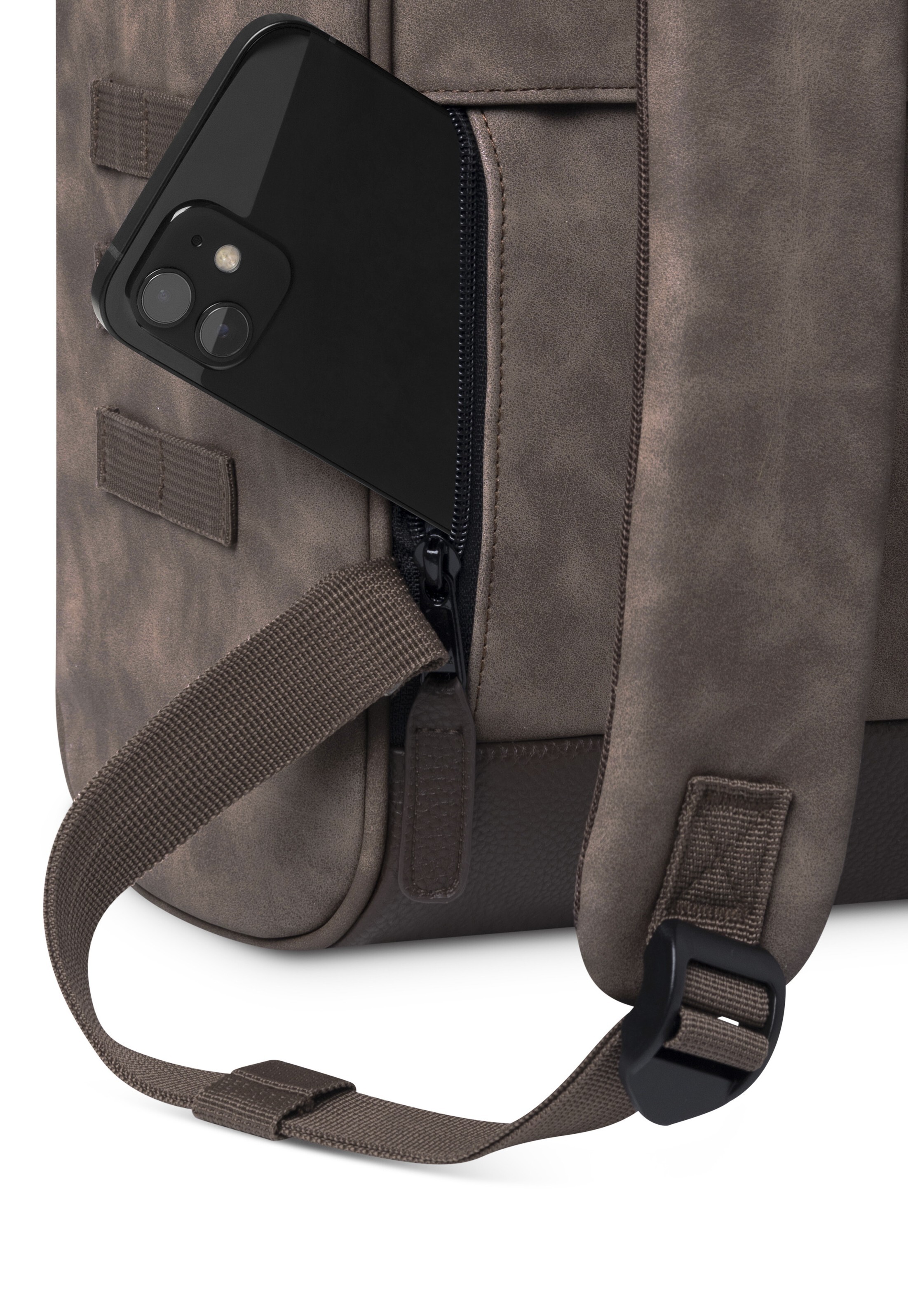 This backpack comes with 2 interchangeable front pockets : Brown (Paofai) + Brown (Bougainville)