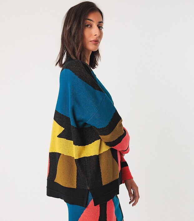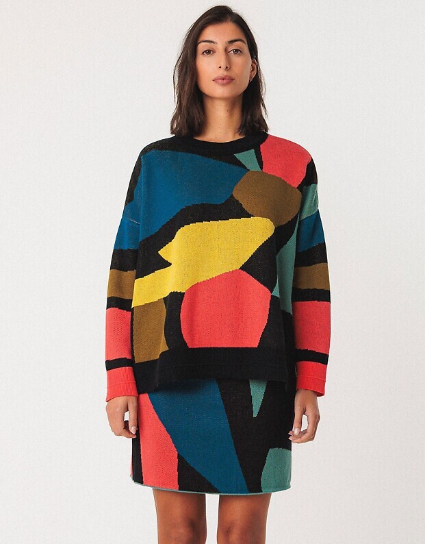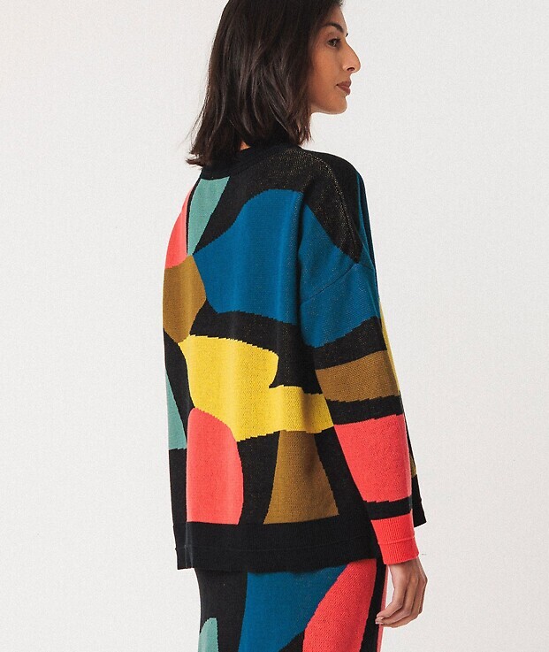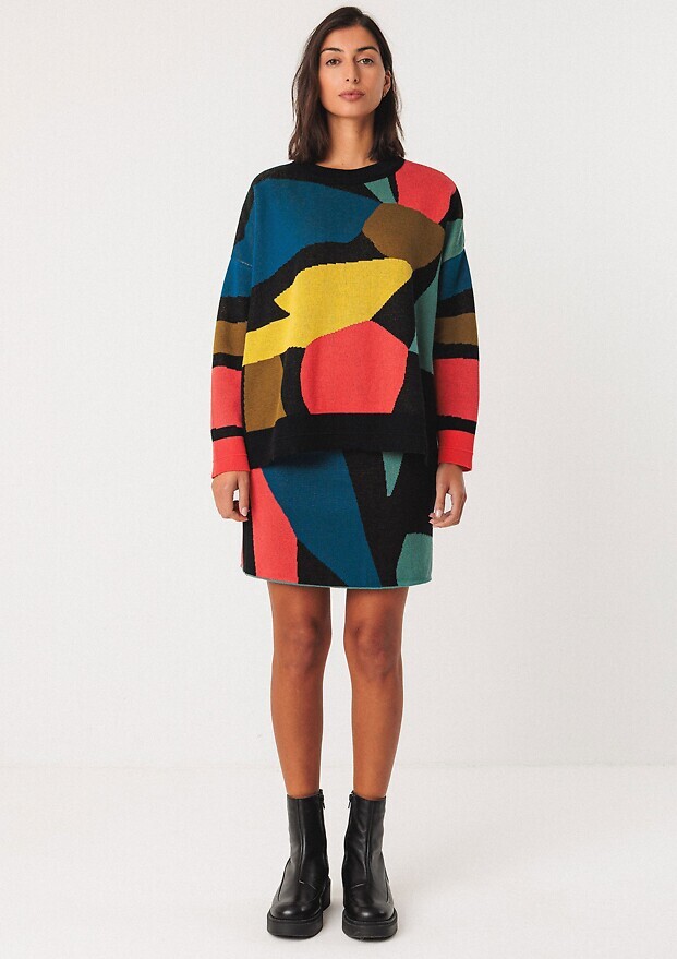 Mittelschwerer Feinstrickpullover mit buntem Jacquardmuster aus weicher Biobaumwolle.
