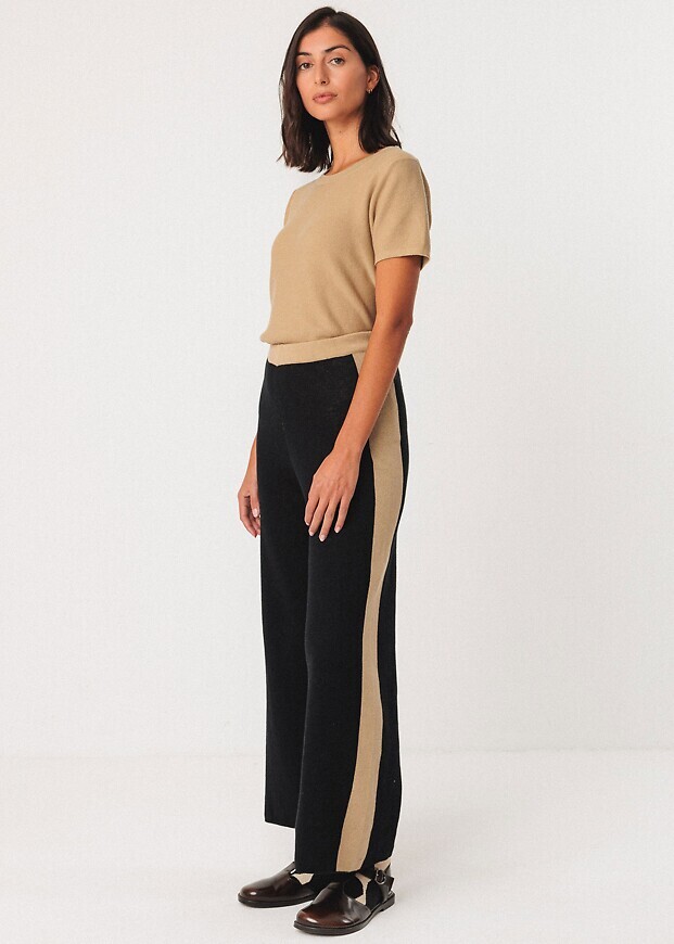 Culotte aus mittelschwerem Feinstrick mit kontrastfarbenen Streifen auf der Seite aus weicher Biobaumwolle.
