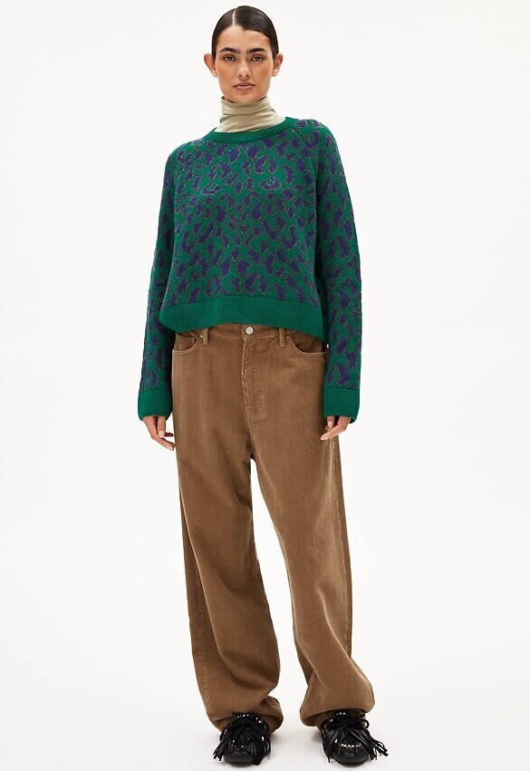 Wollstrick-Pullover "Diliriaa Leopaa" - emerald green