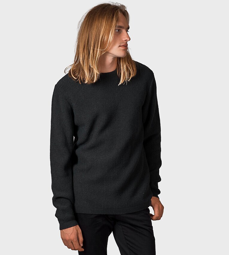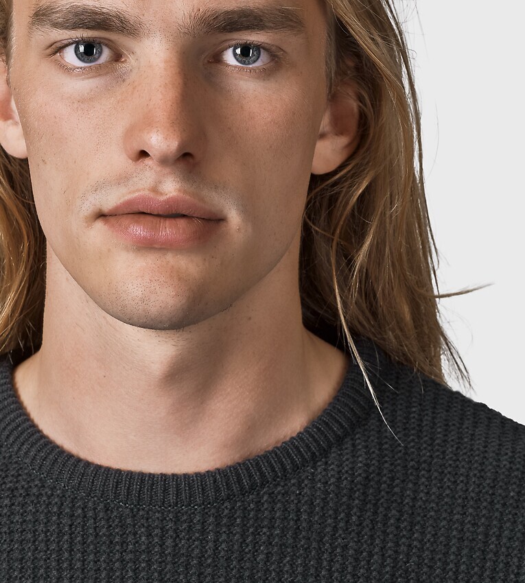 - schmale Rippstrickabschlüsse an Ärmeln und Bund