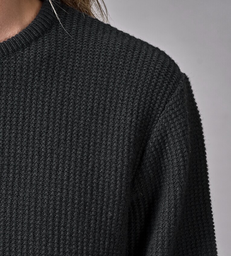 Einfarbiger Strickpullover aus gebürsteter Merinowolle mit strukturierter Oberfläche.