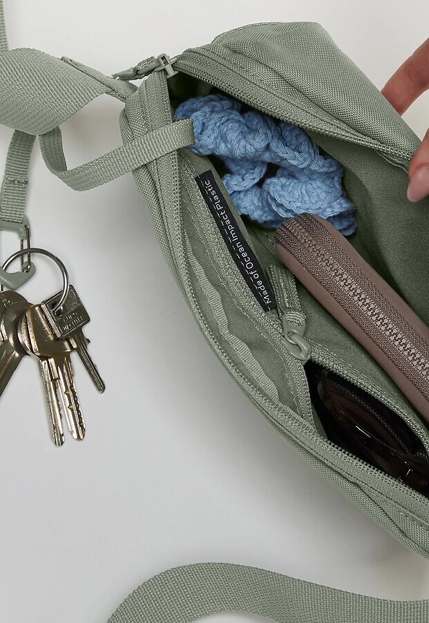 - RE:PET Hauptmaterial aus recyceltem Ocean Impact Plastic, Innenmaterial aus recyceltem PET, Reißverschlüsse aus PA, Polsterung aus PE und Polyester