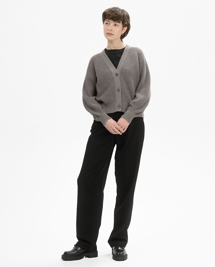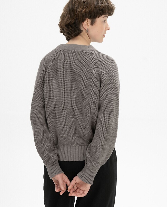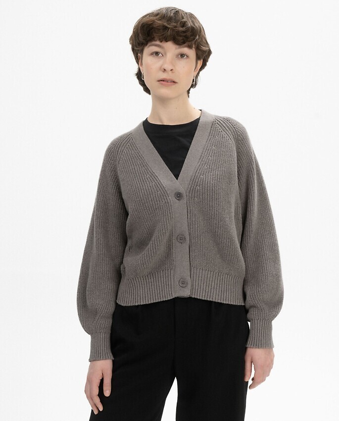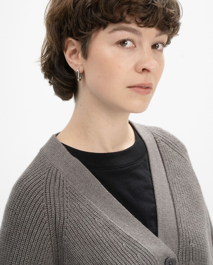 Grob gestrickter Cardigan aus weicher Biobaumwolle mit Knöpfen aus Steinnuss.