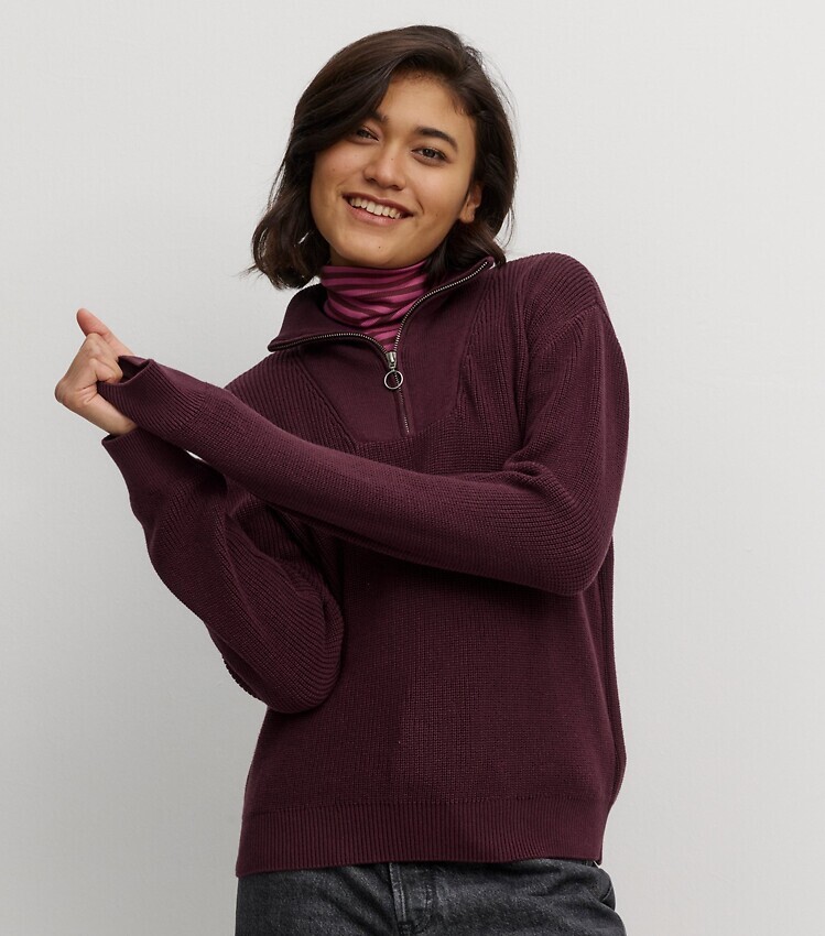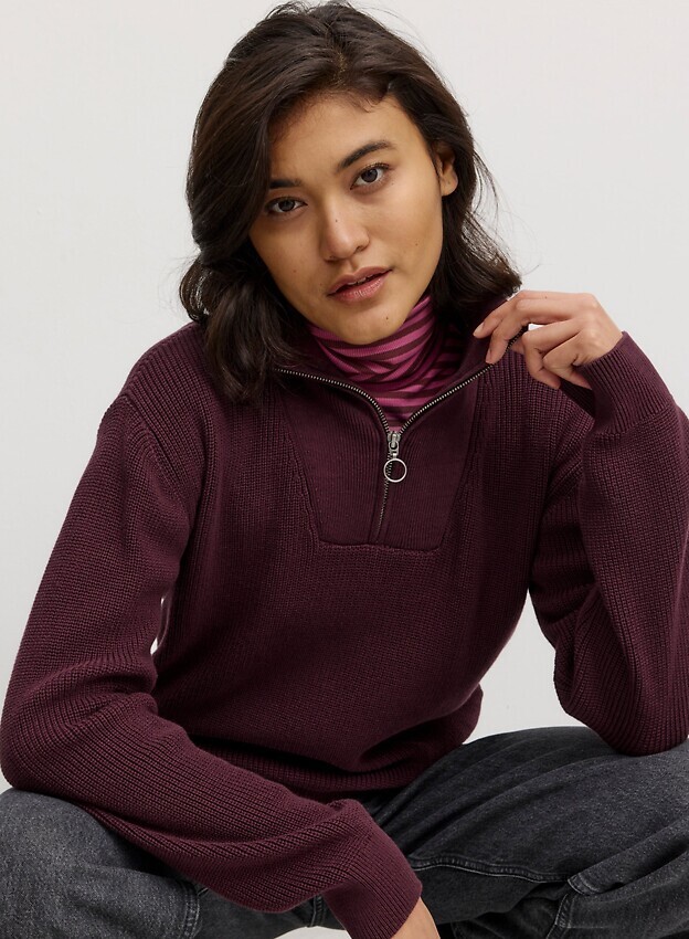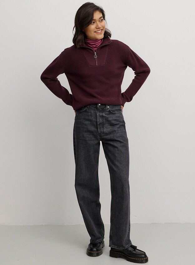 - Zip-Strickpullover aus weicher Bio-Baumwolle