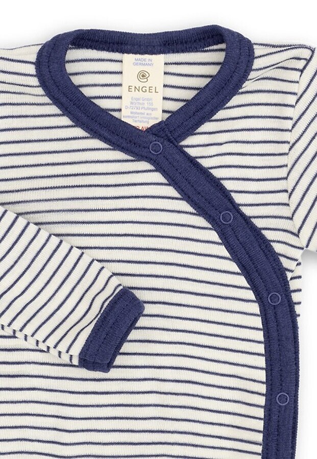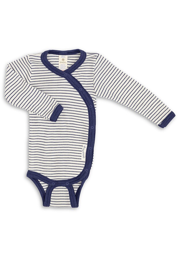 Wickelbody mit Druckknöpfen und langen Armen aus Wolle/Seide-Mischung.