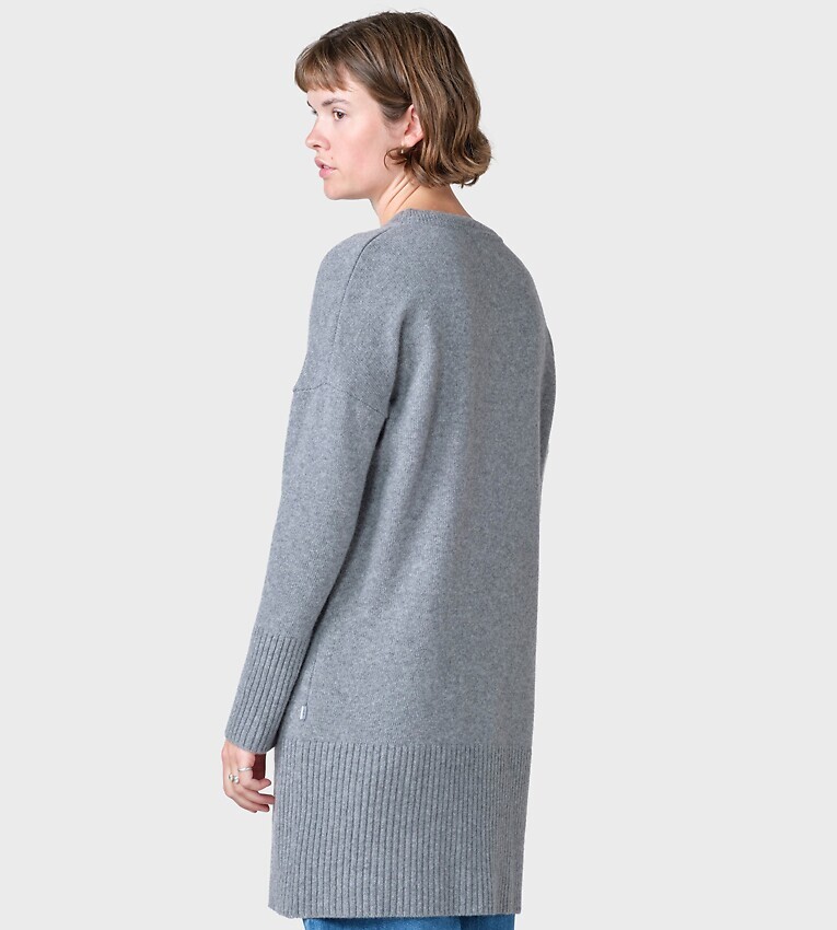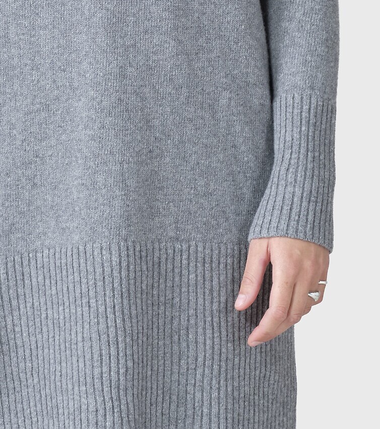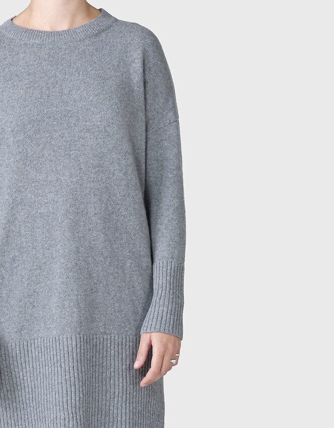 Langes Strickkleid aus gebürsteter Merinowolle mit Drop-Schultern und abschließendem Rippstrick an Ärmeln und am Bund.