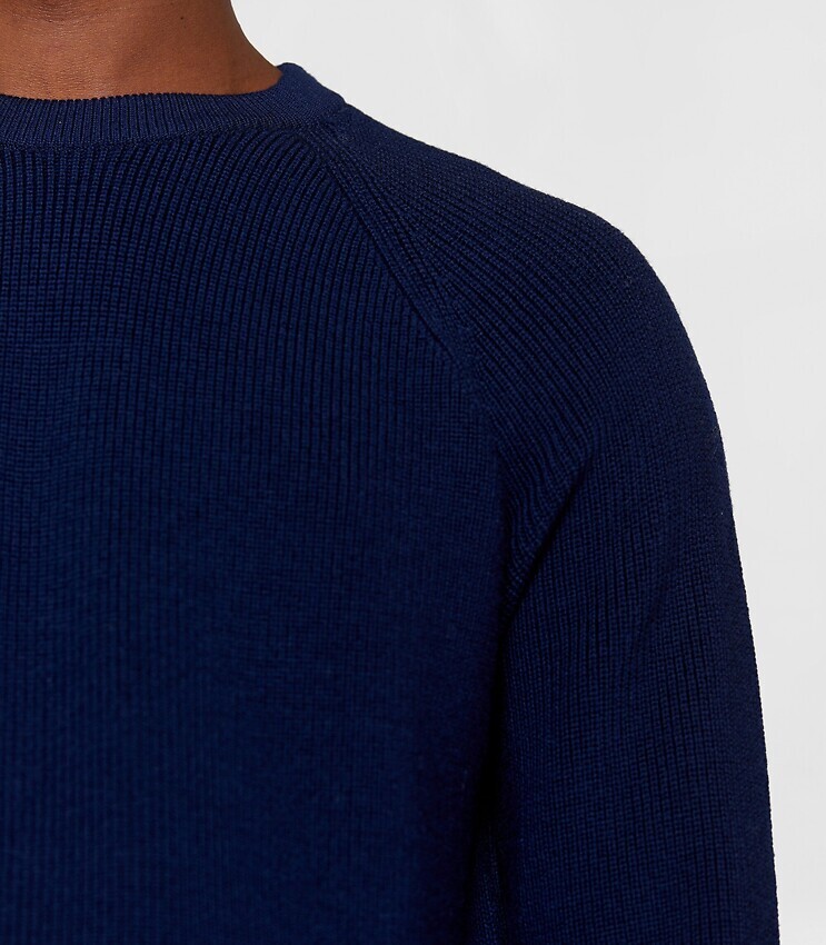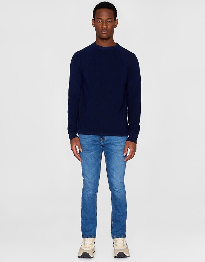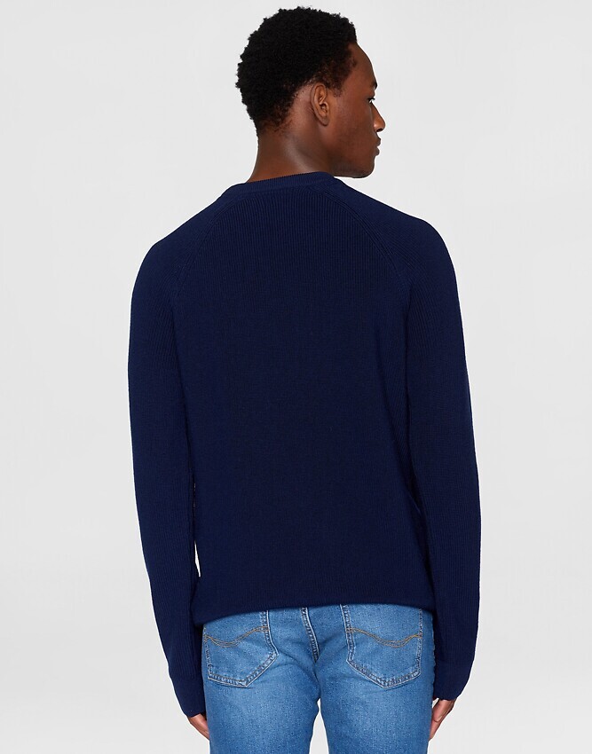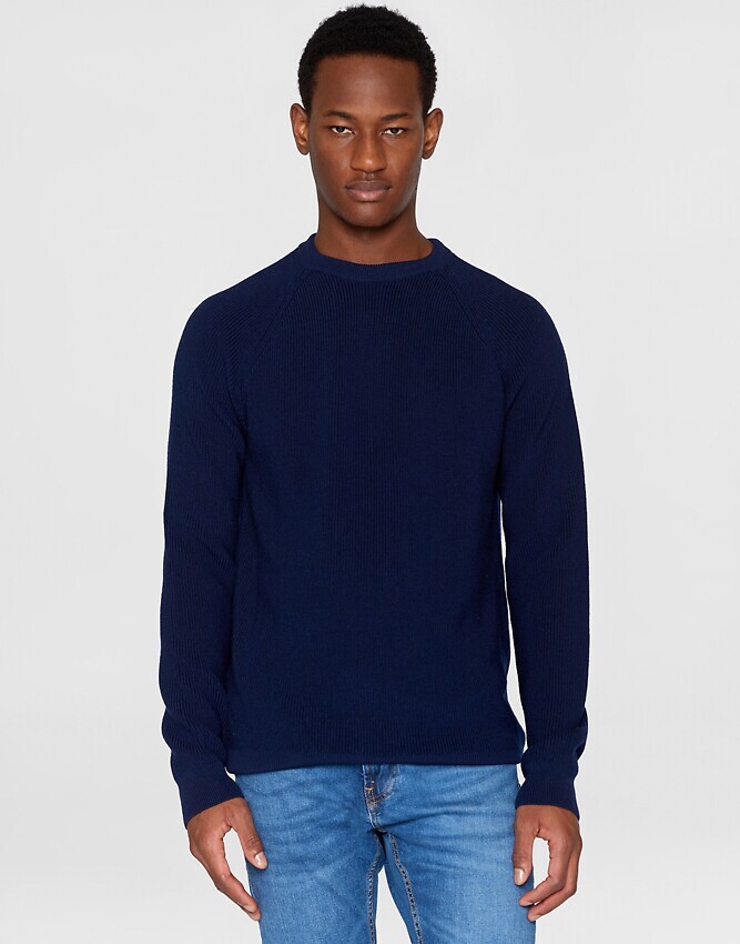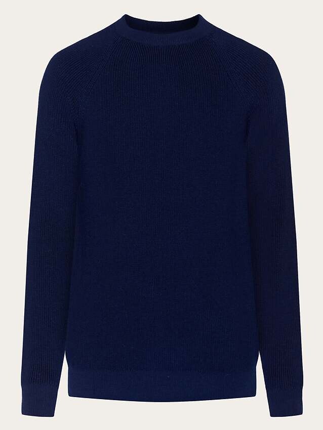 O-Neck Merino Wool Rib Knit - dunkelblau