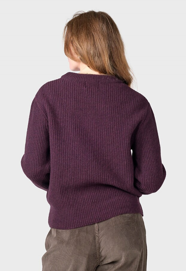 Einfarbiger Wollpullover aus feinster gebürsteter Merinowolle gestrickt mit wunderschöner Rippstrickstruktur, die vertikal durch den gesamten Pullover verläuft. Herrlich warm und weich.