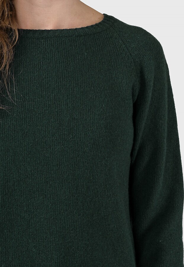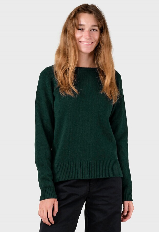 Strickpullover aus gebürsteter Merinowolle mit Rundhalsausschnitt und breiten Rippstrickabschlüssen an Ärmeln und Bund.