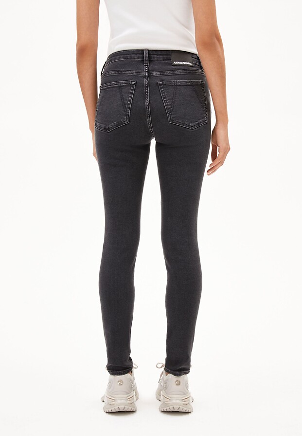 Mid Waist Skinny Jeans in etwas ausgewaschenem Schwarz.
