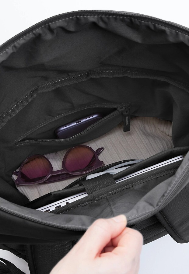 - Flexibler Rolltop-Verschluss mit Reißverschluss