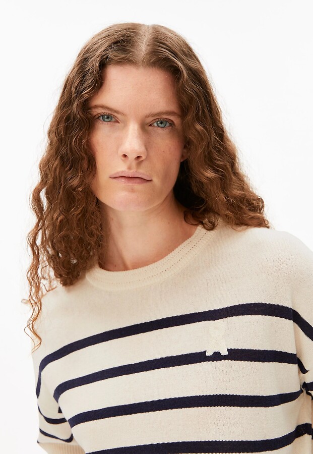 Gestreifter Leinen-Strickpullover - undyed/tinted navy
