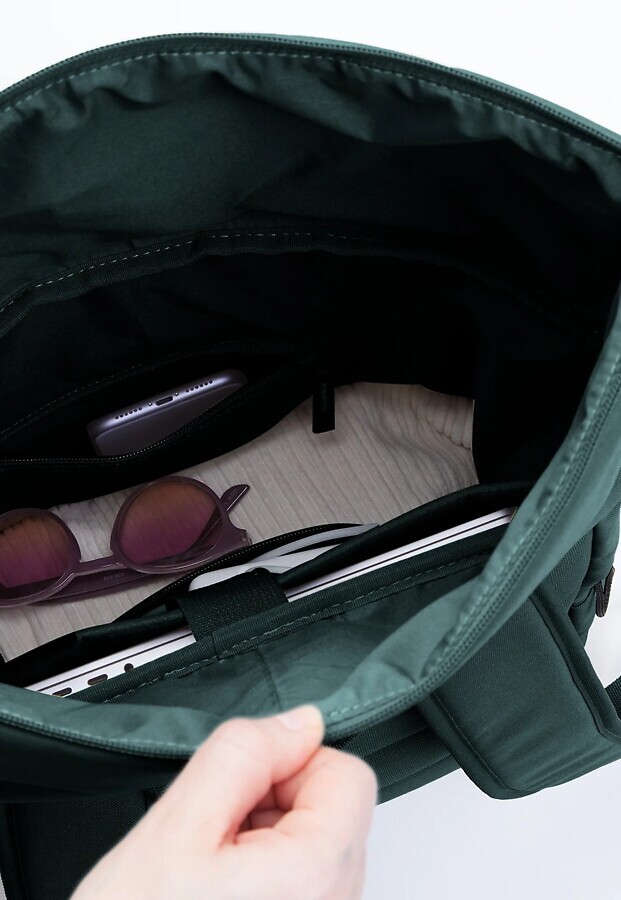 - Flexibler Rolltop-Verschluss mit Reißverschluss