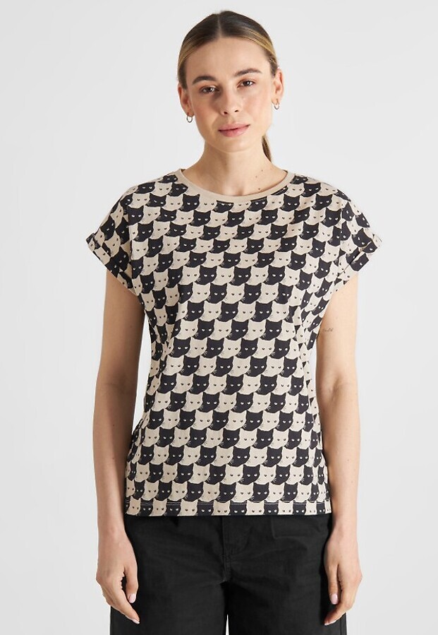 Tailliertes T-Shirt aus weicher Biobaumwolle mit Allover-Print.