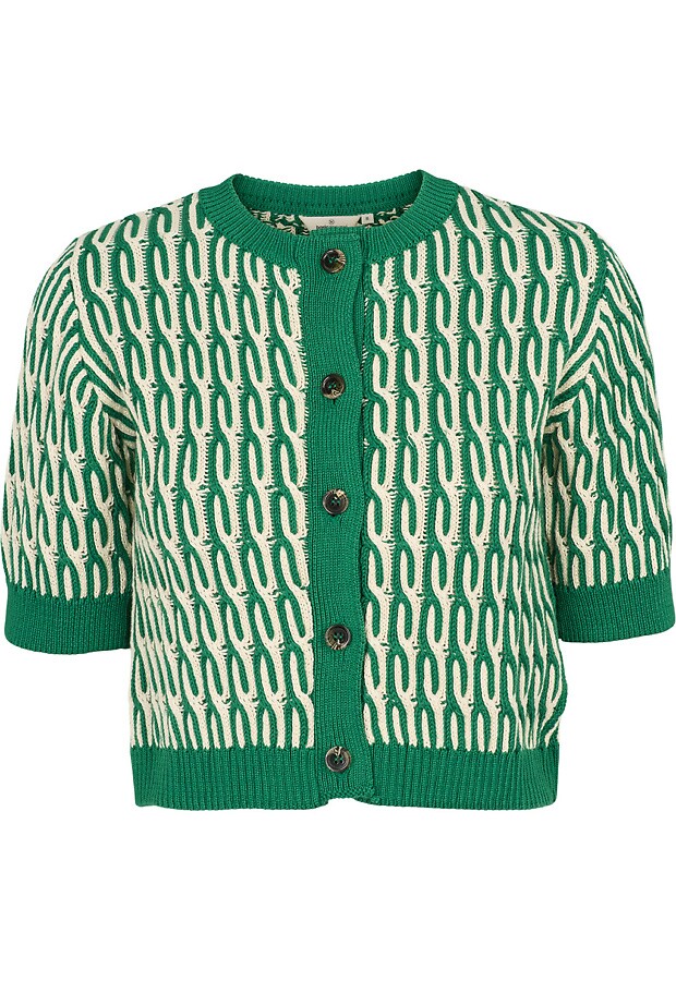 Strick-Cardigan aus weicher Biobaumwolle mit Knopfleiste und kurzen Ärmeln.