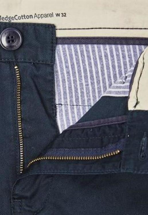 Mit je zwei Seitentaschen und Gesäßtaschen.