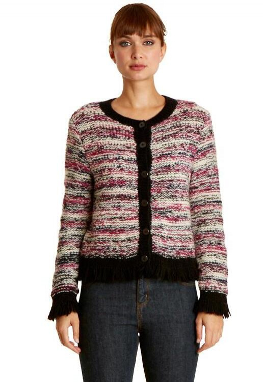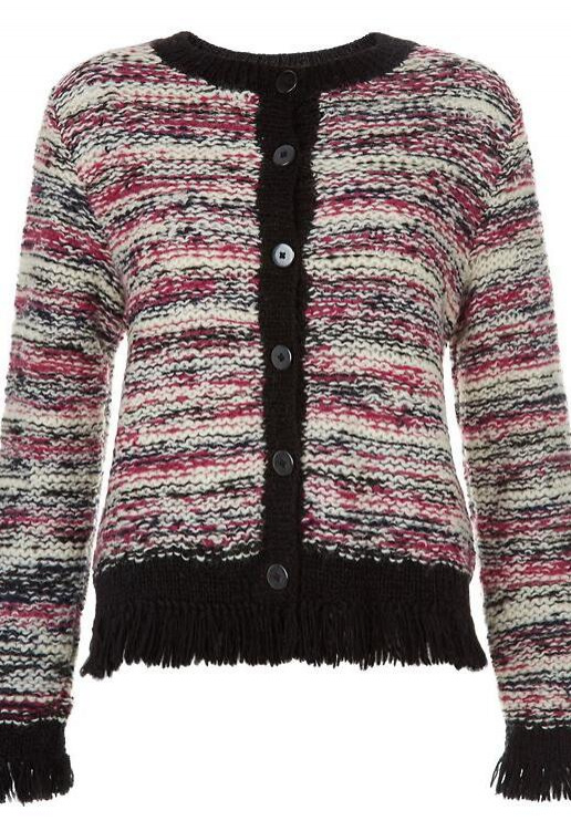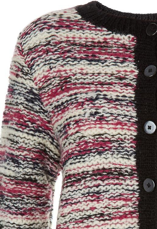 Handgestrickter Cardigan verschiedenfarbigen Garnen.