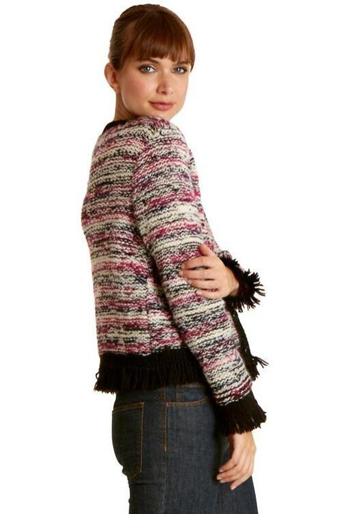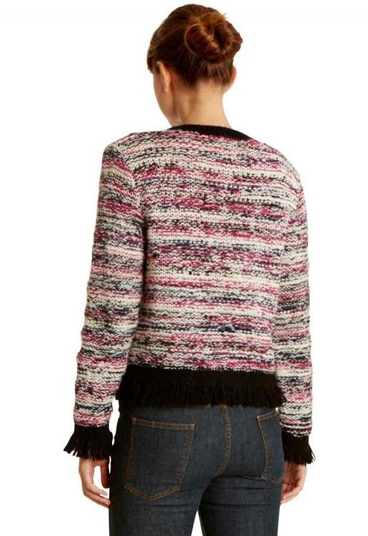 Lange Arme, mit Rundhalsausschnitt und Fransen an Ärmeln und Saum.