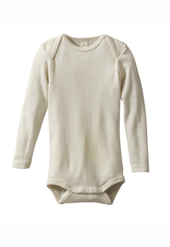 Baby Body langarm, Wolle/Seide - naturweiß