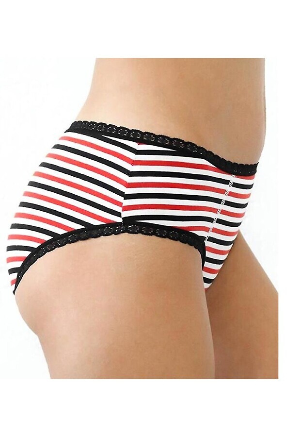 Damen Hipster mit Spitze - weiß/rot/schwarz gestreift