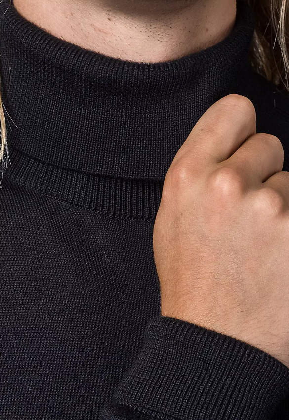 Ein leichter, eng anliegender Merinopullover mit Rollkragen- ideal für einen Lagenlook, und um im Bereich um den Hals angenehm warm zu bleiben.