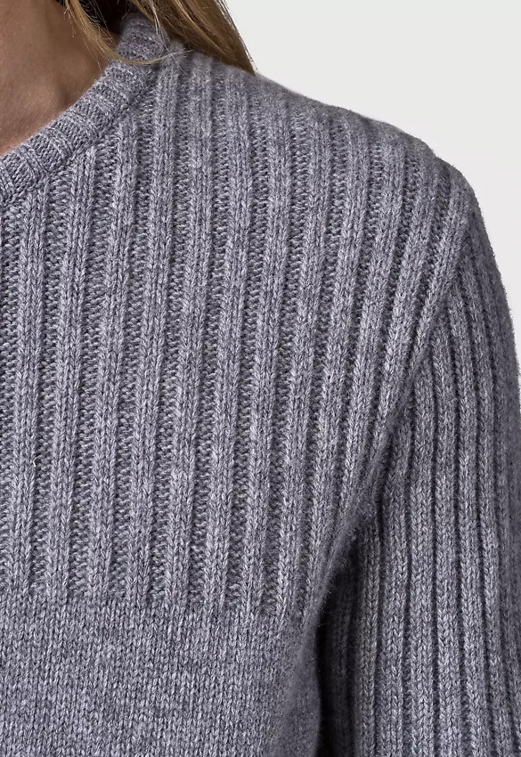 Warmer Pullover aus gebürsteter Merinowolle mit Strukturstrick an Schultern, Oberarmen und über der Brust.